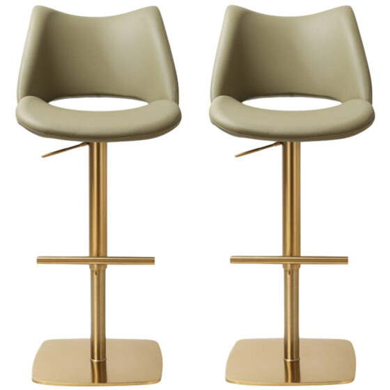 Cardwell Olive PU Leather Bar Stools With Gold Base In Pair